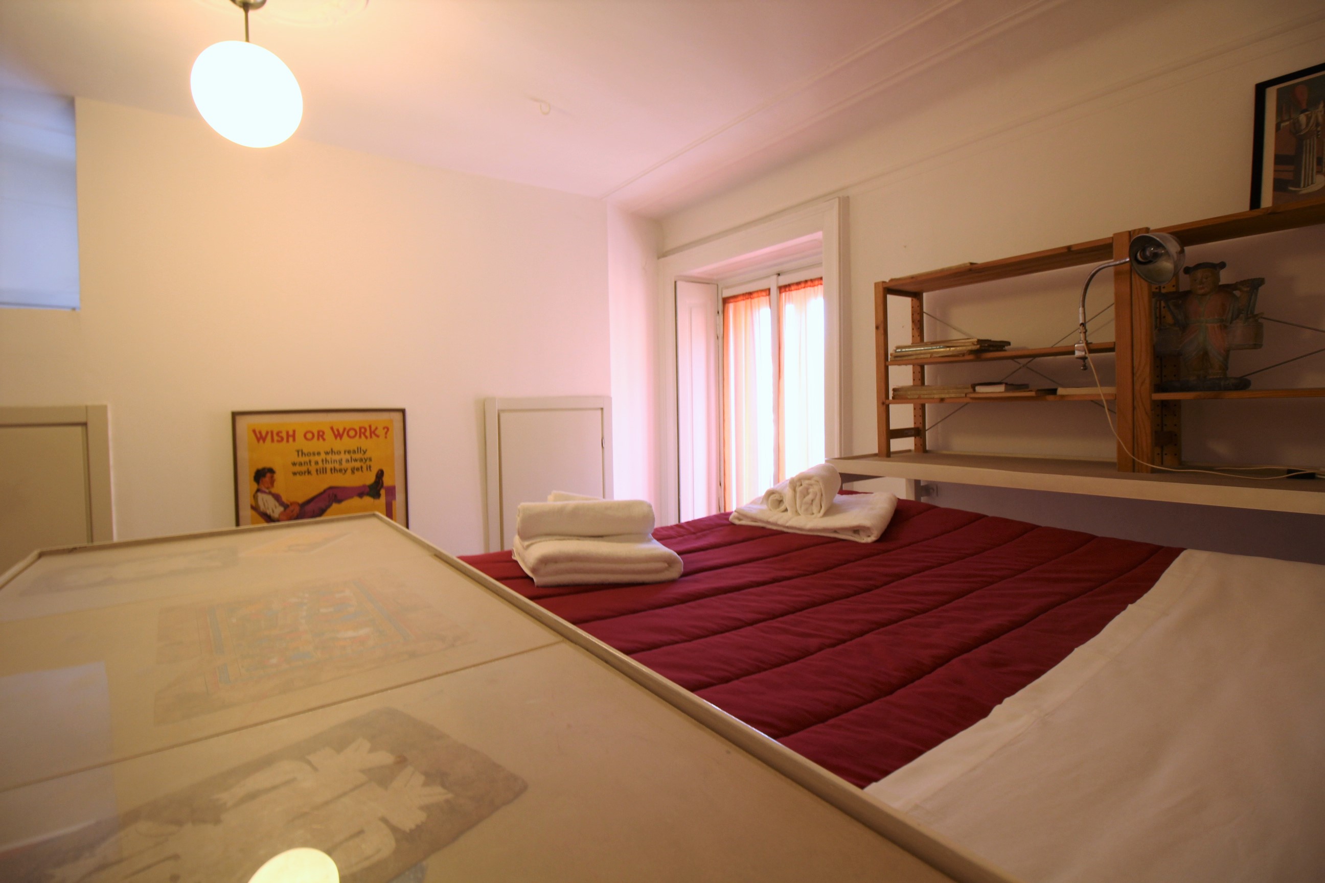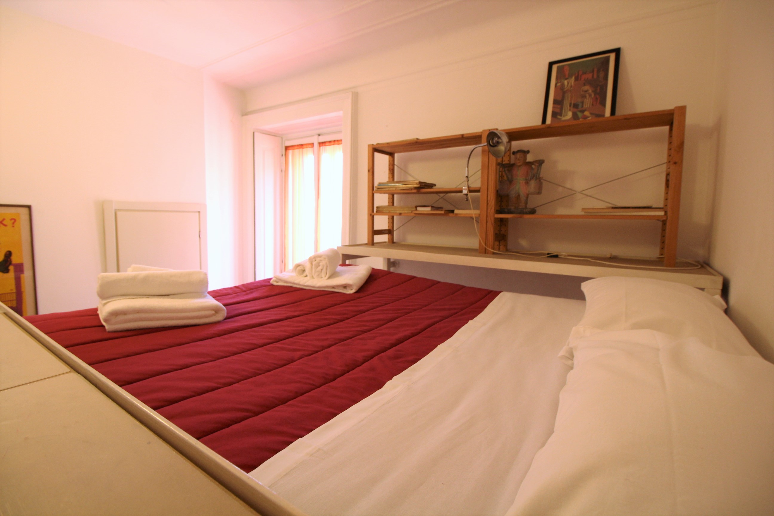 Wonderful double room with two queen sized bed (one on the bottom and one on the mezzanine). The room comes with a private bathroom with washing machine and shower, a big wardrobe and a walk-in closet.