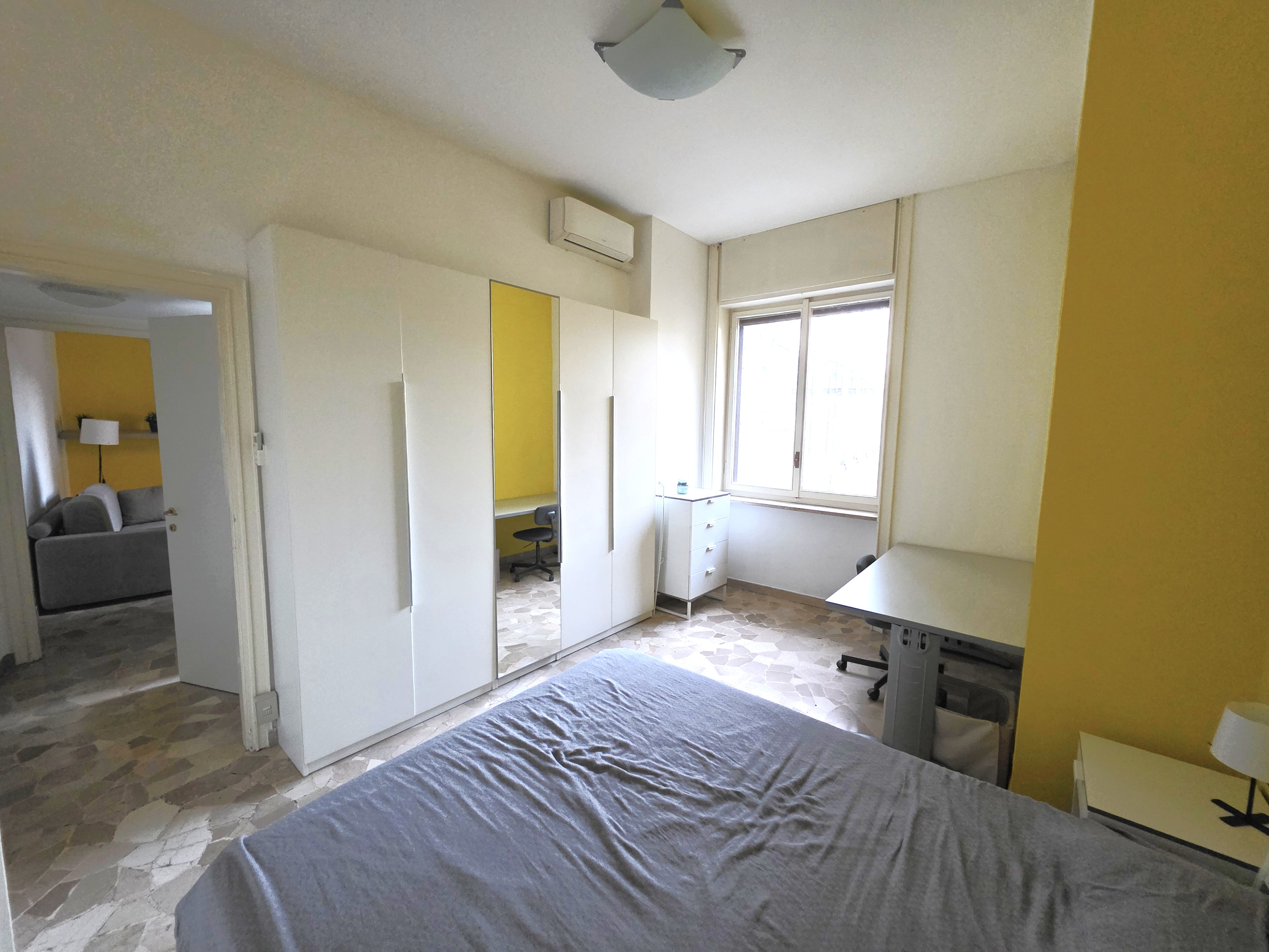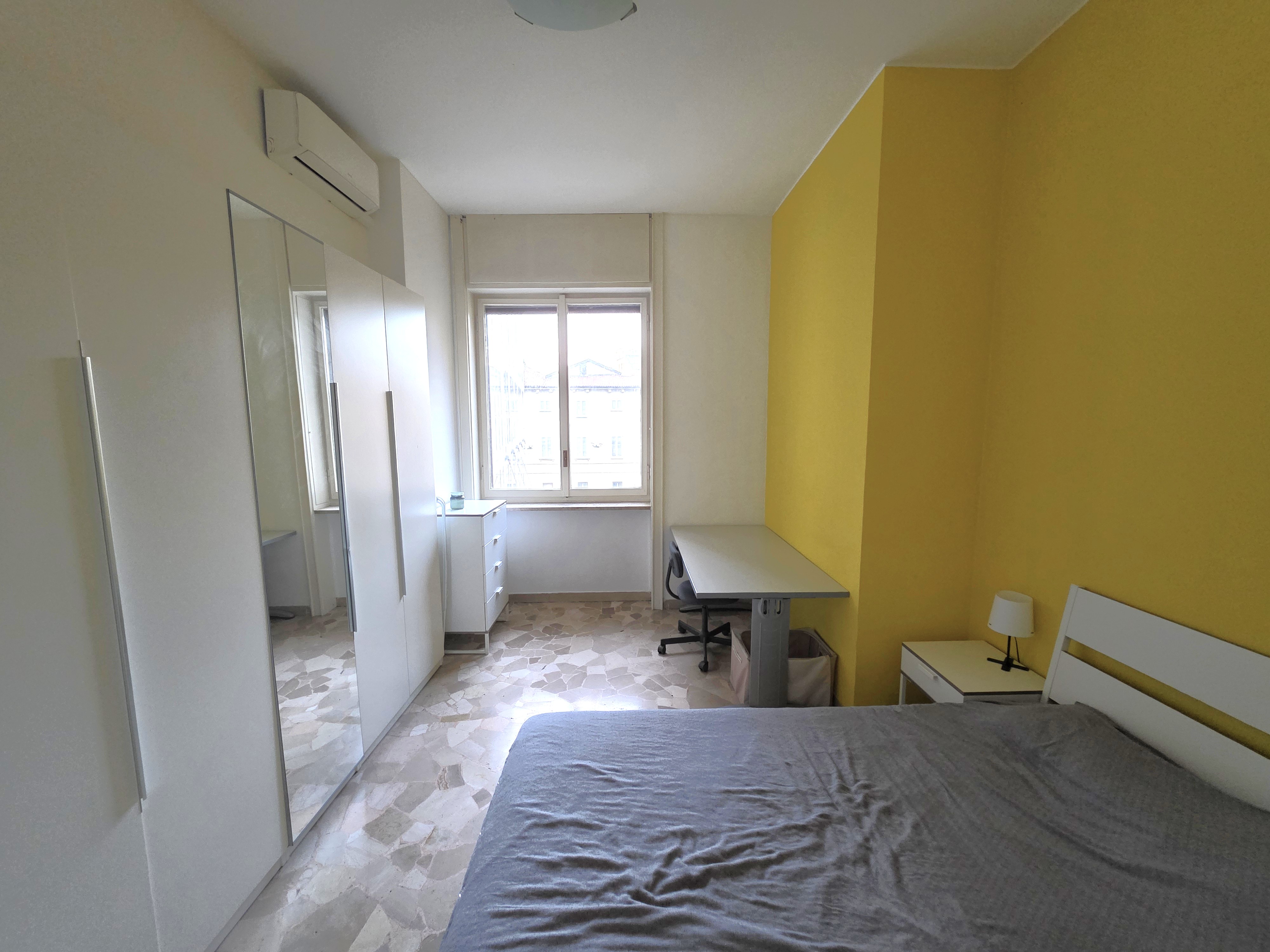 Spacious, bright room with a double bed, large wardrobe, chest of drawers, desk, and chair. Air conditioning is included.