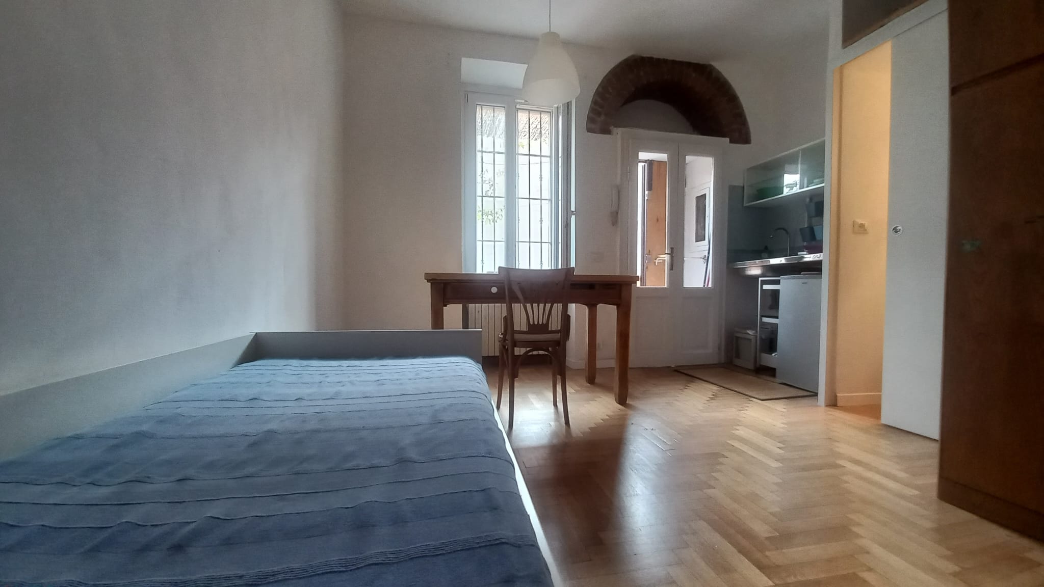 Cozy studio apartment located on the first floor of a characteristic “palazzo di ringhiera”, a traditional Milanese building, in the lively Navigli district, on Via Gola.