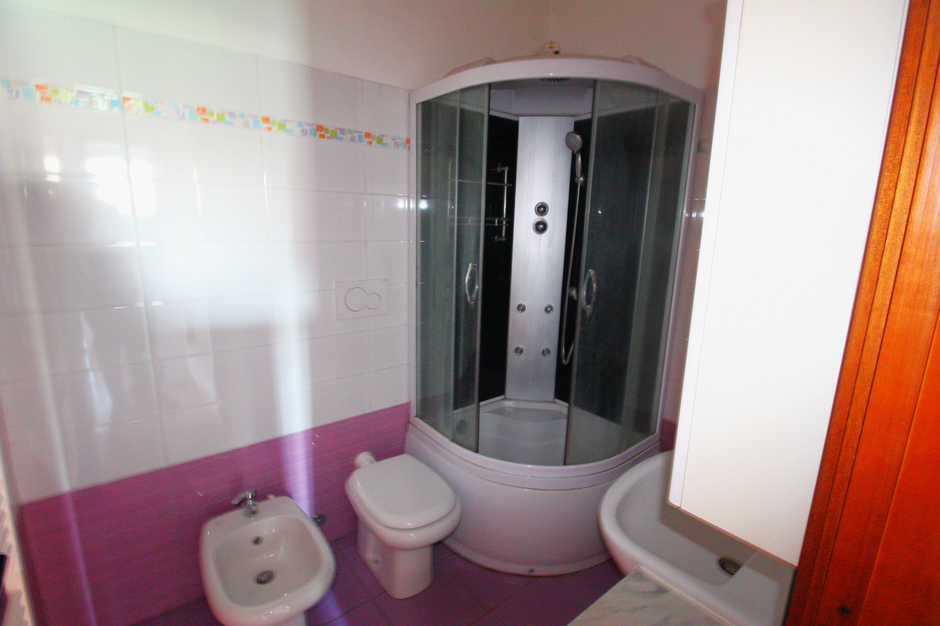 Large apartment of almost 120 square meters on the first floor, comprising an entrance hall, 4 single bedrooms, a kitchen, 2 bathrooms, and 2 balconies.