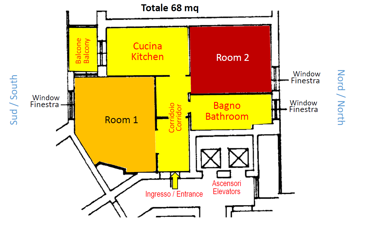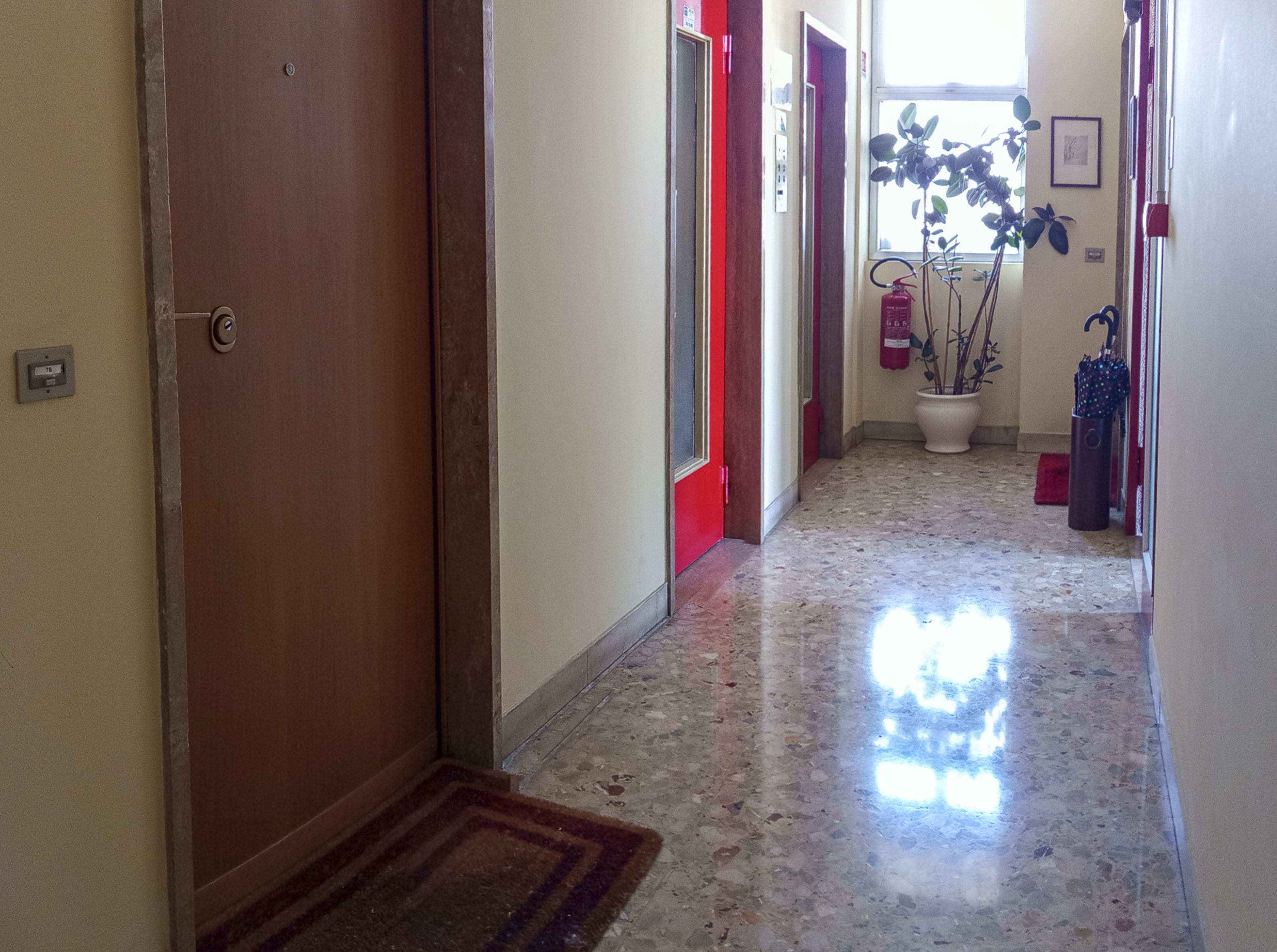 Convenience Assured: A central corridor (corridoio) connects the rooms, ensuring privacy, and the windowed bathroom is conveniently located.