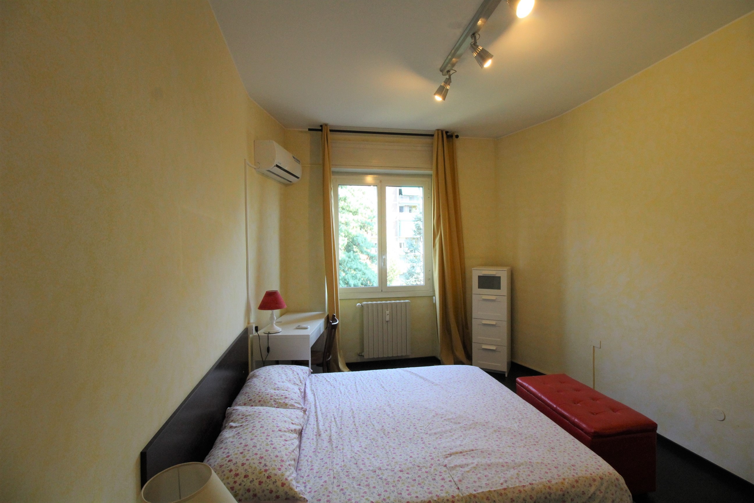 Big single room with double bed, fully furnished with desk and a large wardrobe.