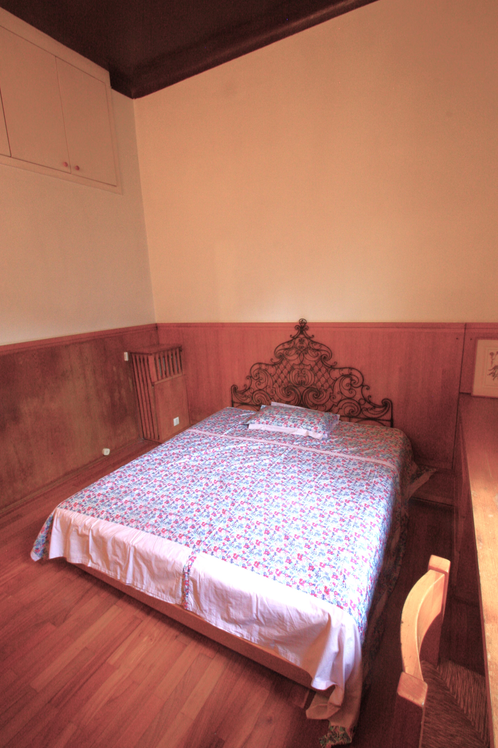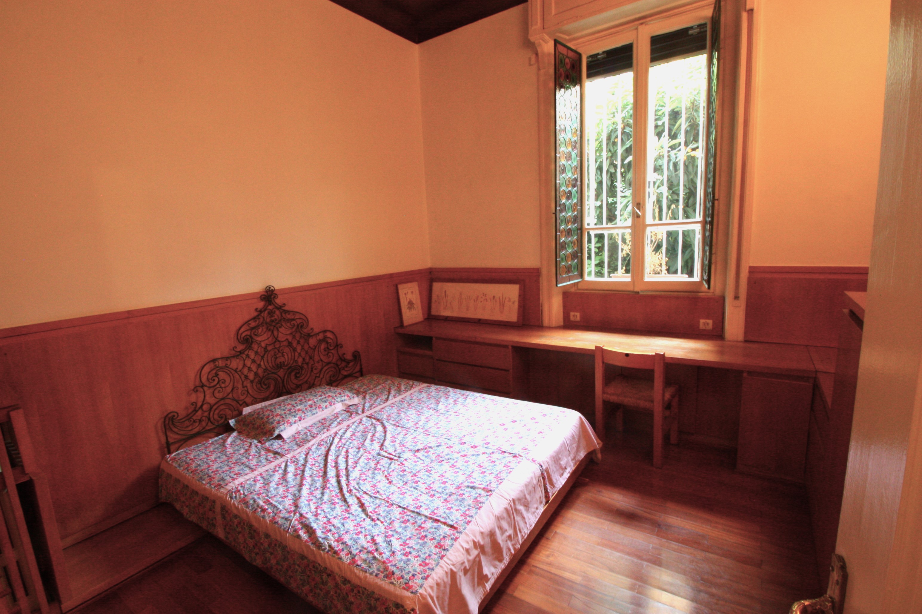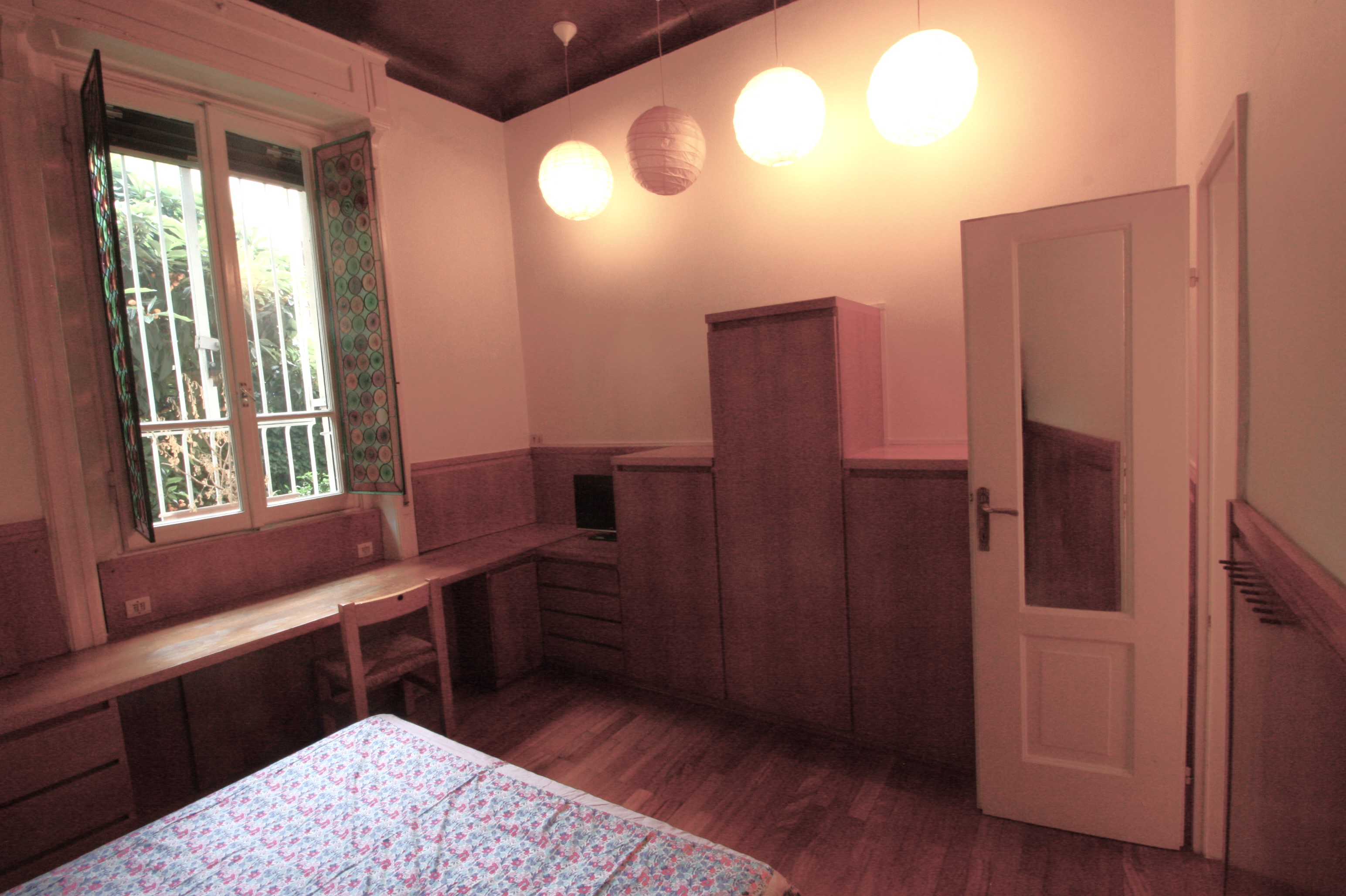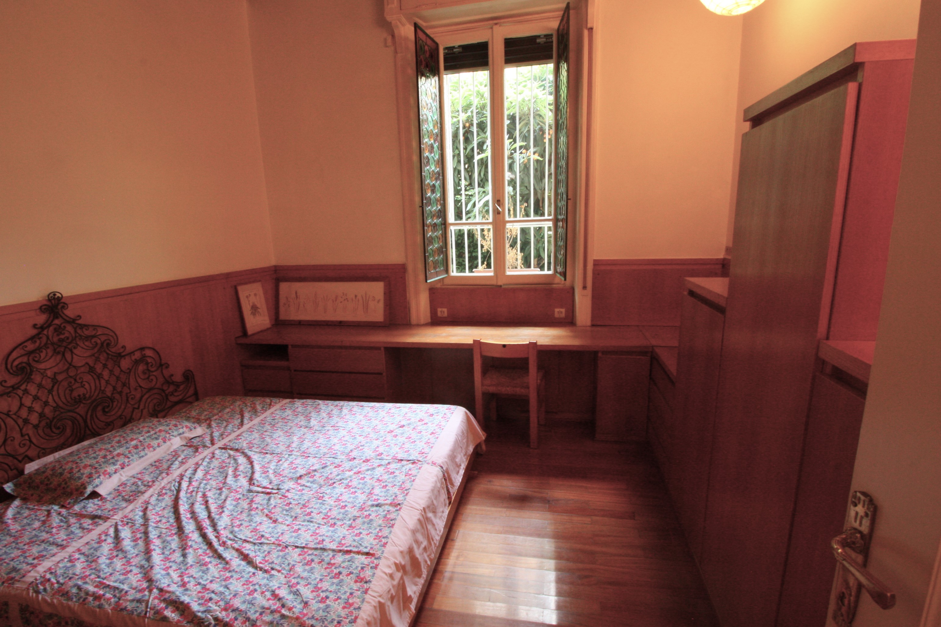 Very nice three-room apartment on the mezzanine floor, very bright and welcoming and with a beautiful private garden on the ground floor reachable by an external staircase. The apartment consists of an entrance hall with closet, living room with kitchen and access to the garden, two single bedrooms (one of which can be suitable for two people who know each other as there is a double bed) and a bathroom.