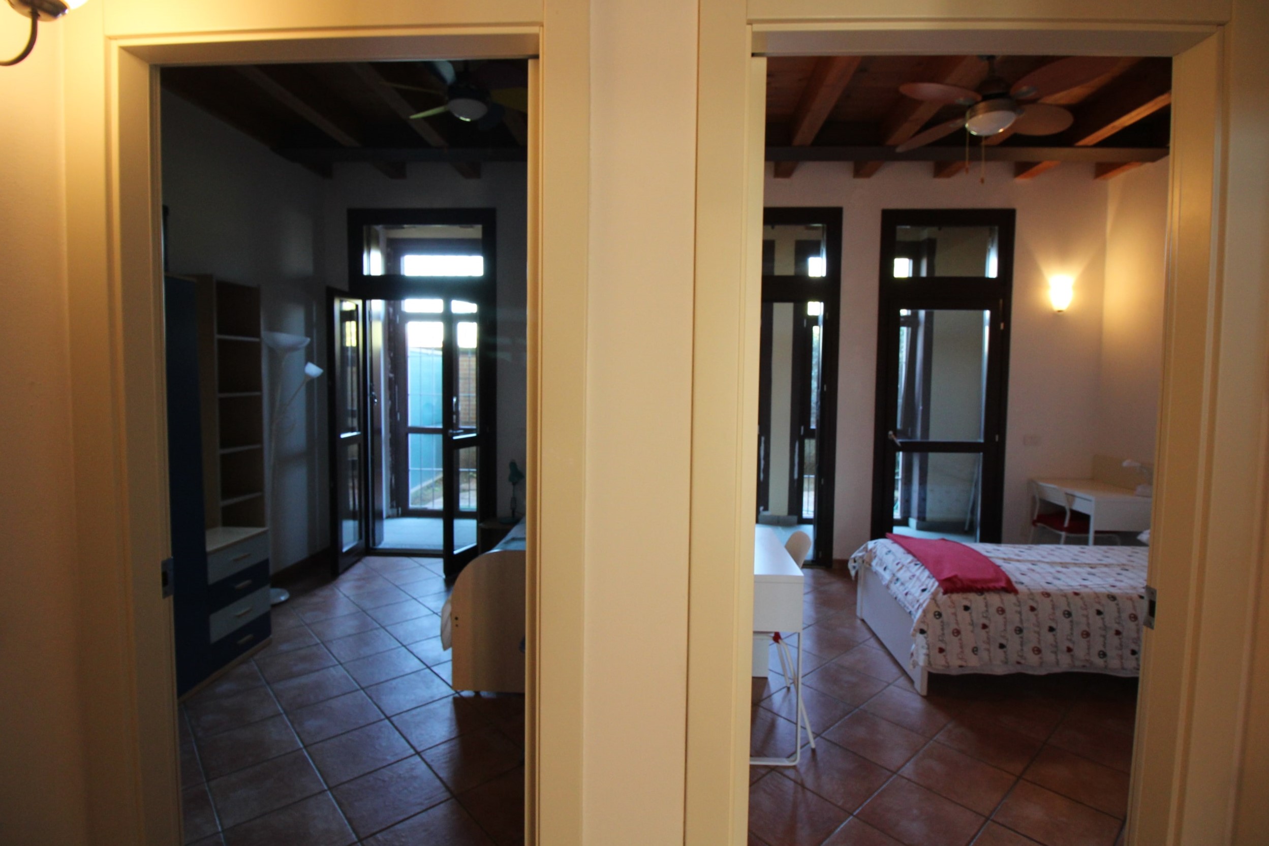 Appartamento trilocale luminoso di 120 metri quadri al piano terra all'interno di una corte completamente ristrutturata con grande giardino interno e cortiletto privato con veranda. Appartamento composto da entrata principale con soggirono con divano (non mostrato in foto), cucina completamente accessoriata e dotata di lavastoviglie e lavatrice, bagno con vasca, due camere da letto collegate da corridio esterno e secondo cortile adiacente.