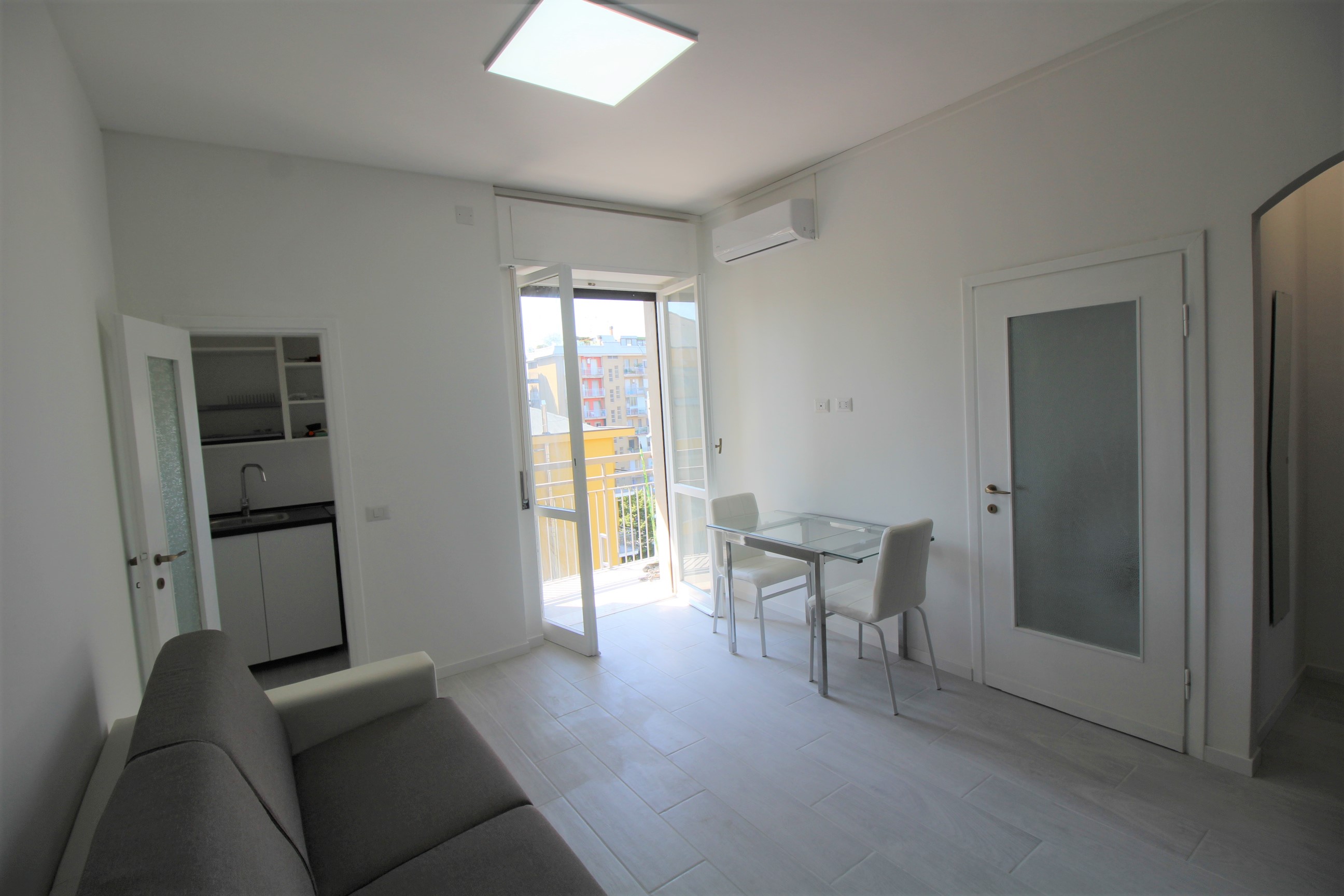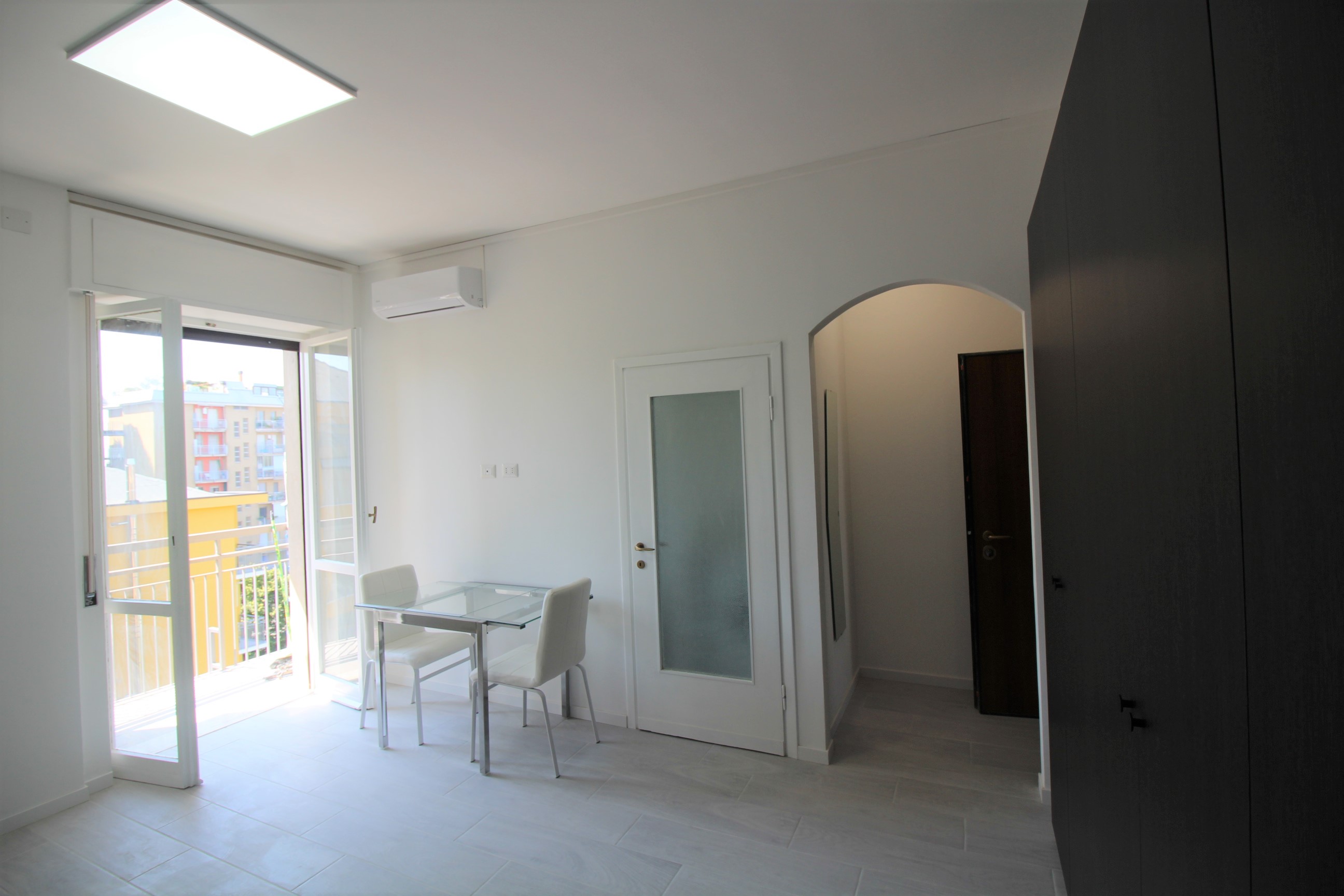 Grazioso monolocale appena ristrutturato posto al 6° piano gode di molta luminosità e molto silenzioso. E' composto da cucinotto, divano letto e tavolo nella zona giorno/notte, bagno e balcone. L'appartamento è fornito di aria condizionata. Internet Flat con capacità di down/upload di 1000gb via cavo e di 500gb via modem wireless. Su richiesta viene fornita al locatario inclusa nel prezzo di locazione una tessera SIM solo dati (triple size: SIM/Micro/Nano) che potrà essere utilizzata fuori casa e su tutto il suolo italiano ed include 100gb mensili - questa potrà essere direttamente inserita per es. all' interno di un tablet, in una chiavetta, in un modem portatile o in un secondo cellulare con la sola funzione di Hotspot. Tutte le apparecchiature elettriche sono nuove, garantite e con manuale.