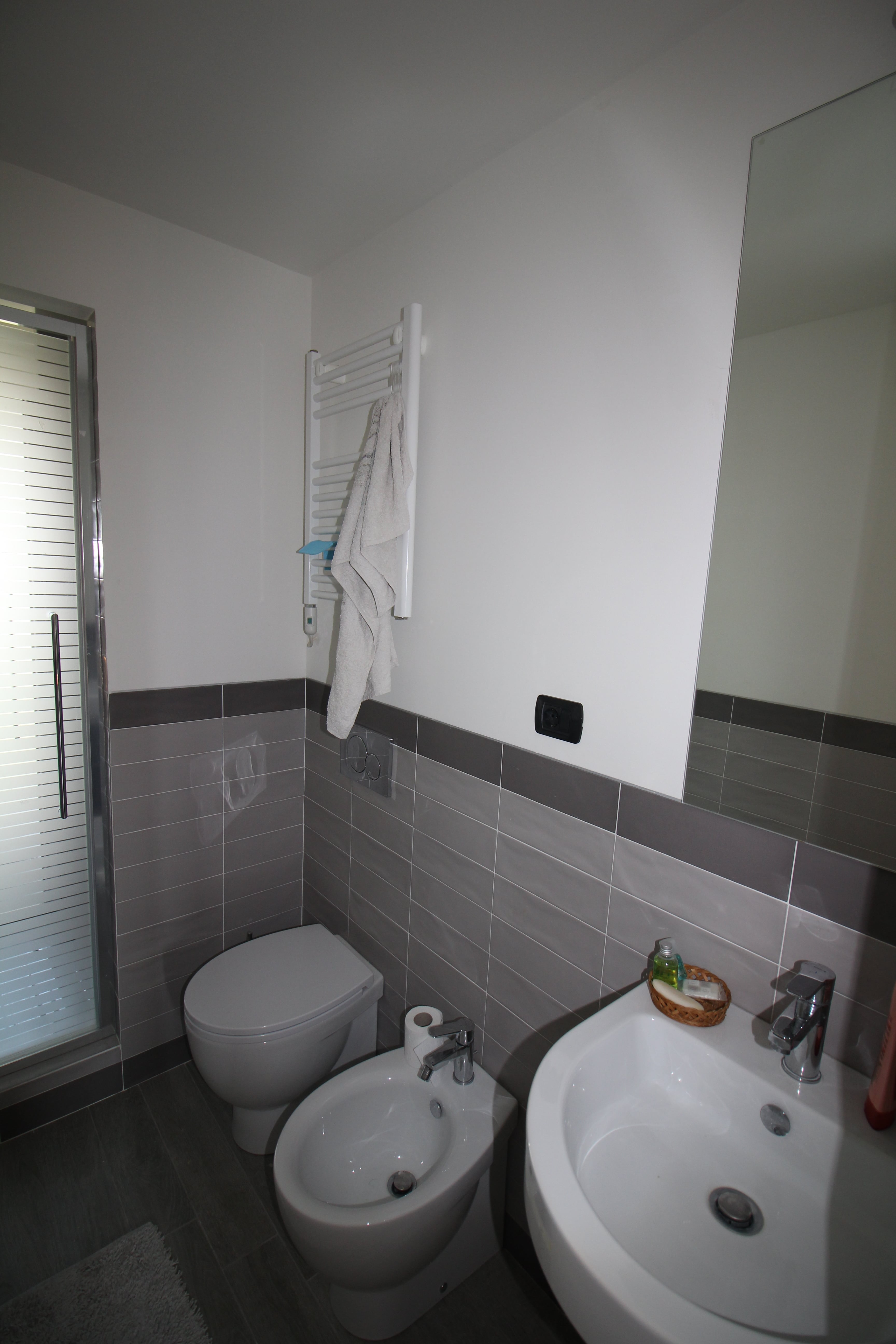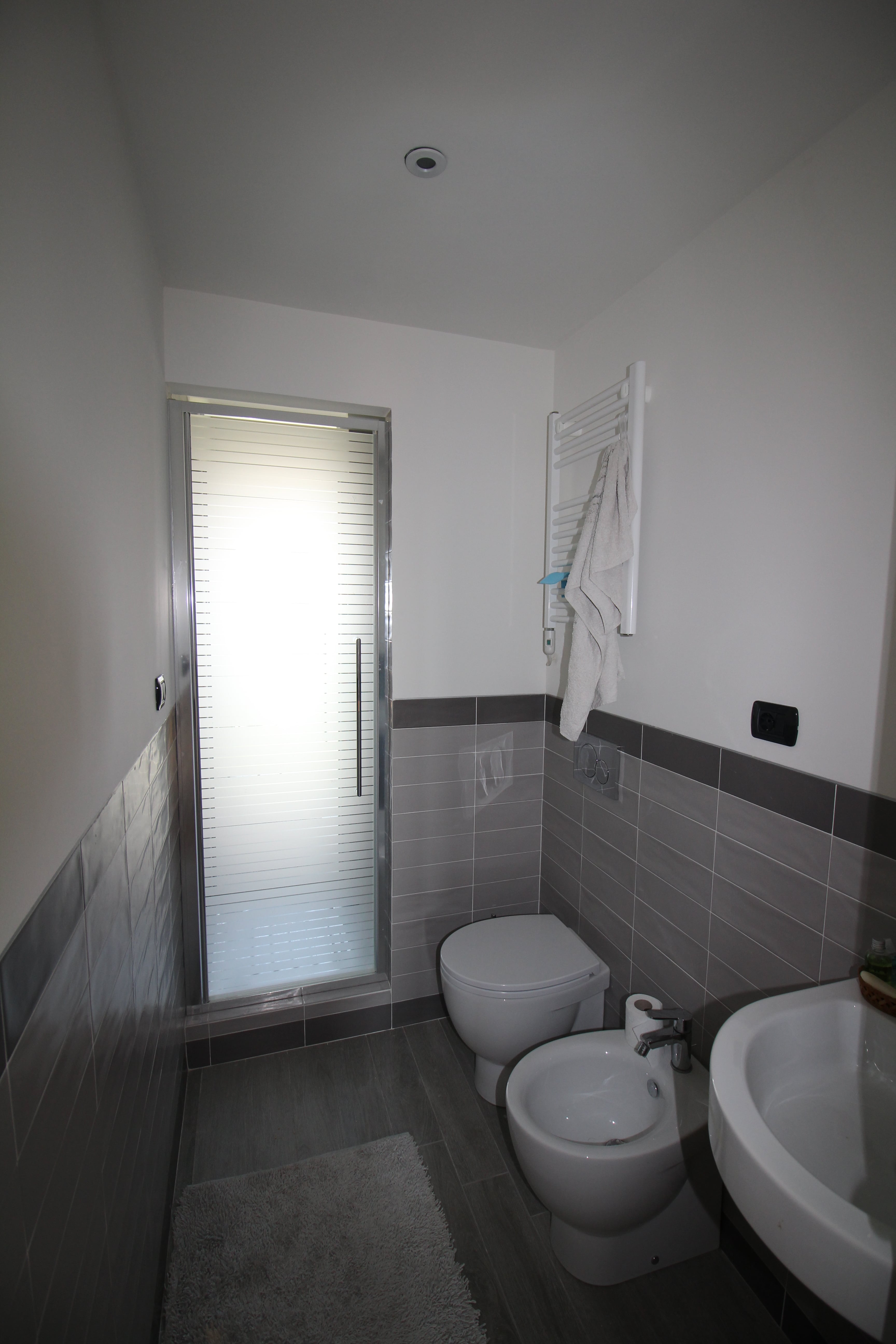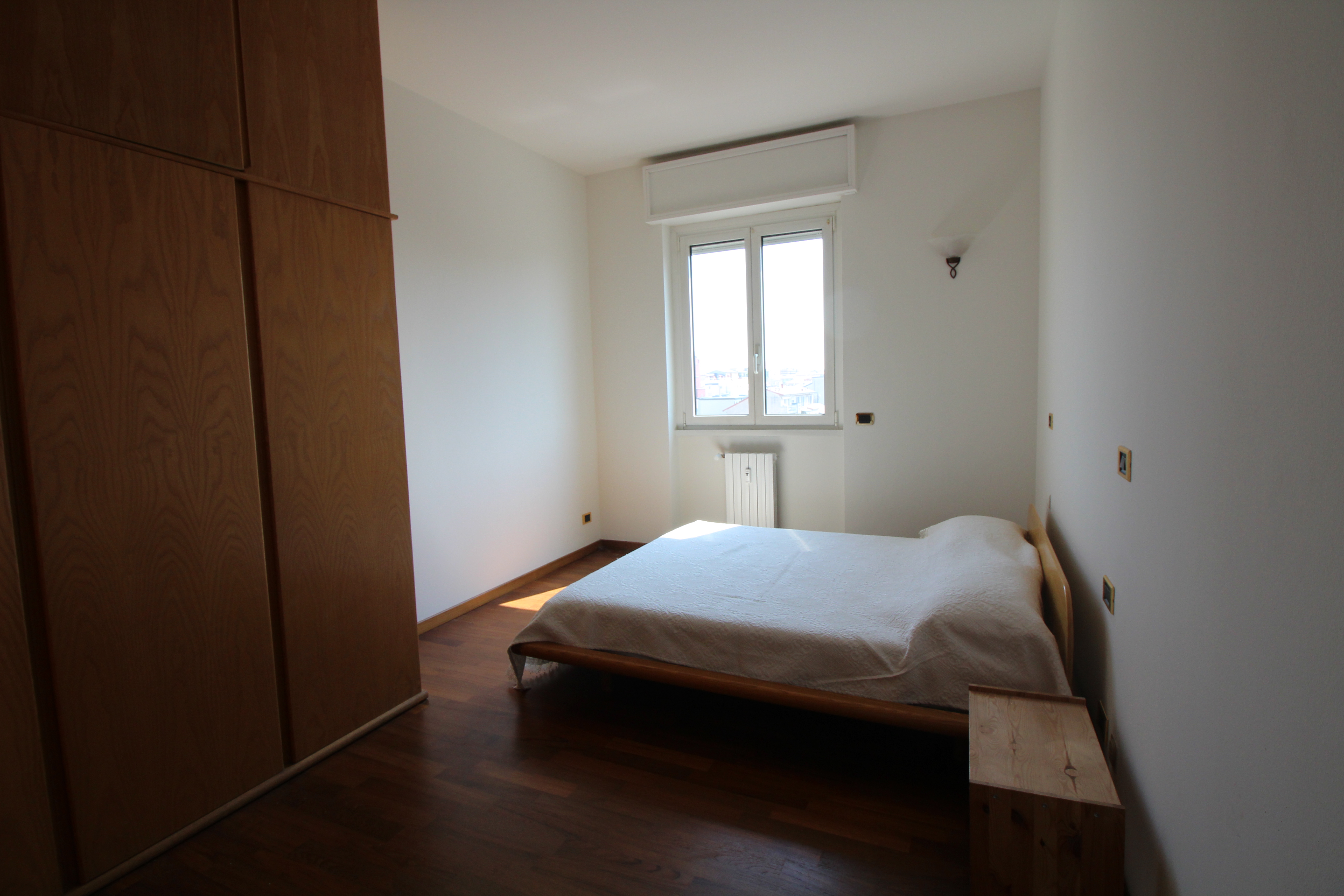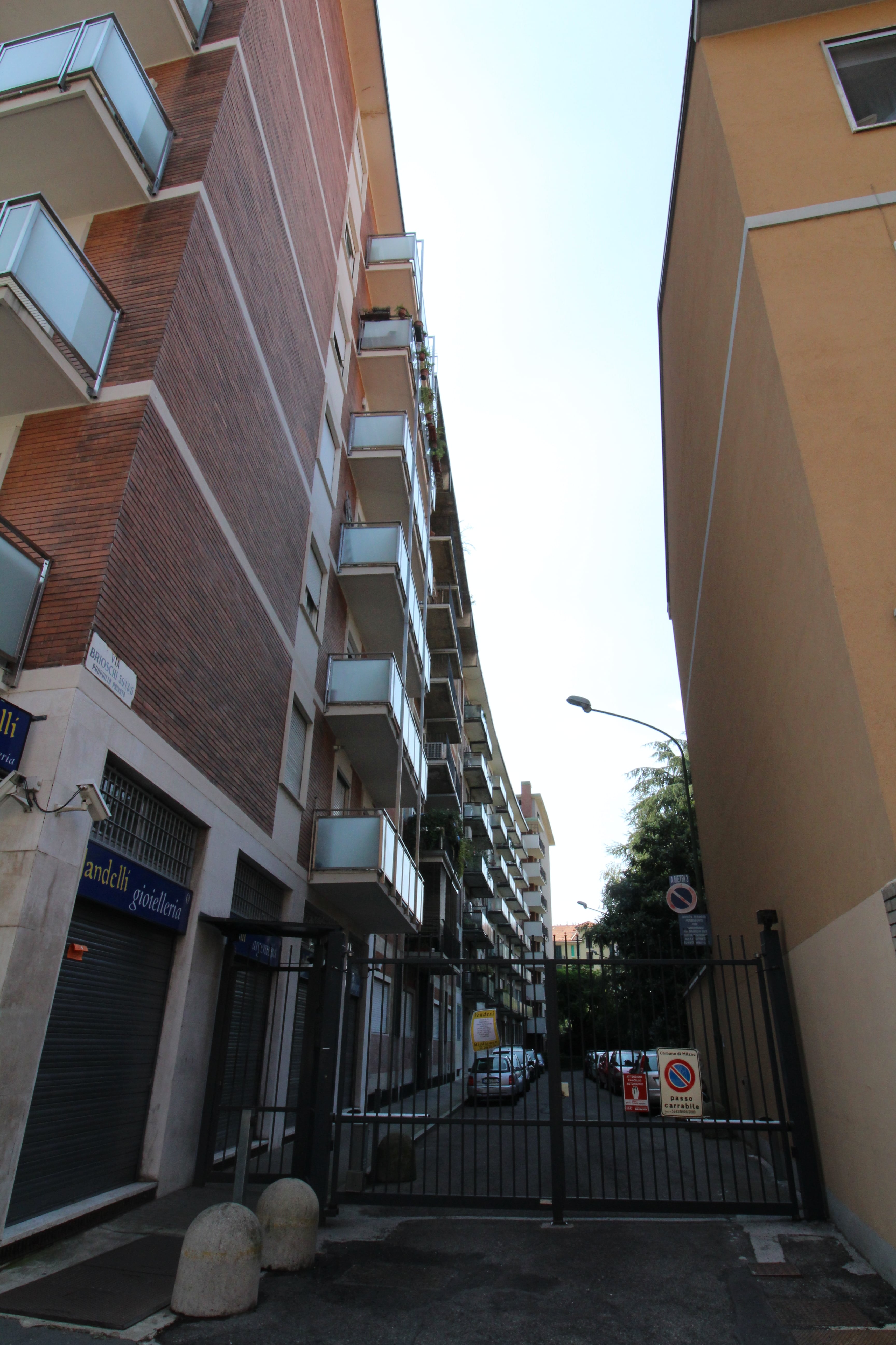 Grande appartamento di 90 metri quadri situato al sesto piano (con ascensore) e composto da ampio ingresso con soggiorno molto spazioso (con balcone), cucina moderna abitabile completamente accessoriata, fornita di lavastoviglie e con balcone adiacente. Le tre camere singole che lo compongono si presentano anch'esse grandi, spaziose e molto luminose e una di essere ha accesso privato al bagno. Il bagno infatti è diviso in due dalla doccia ad uso comune, un lato del bagno con accesso dal corridoio è ad uso comune, mentre l'altro lato ha accesso da una delle tre camere ed è ad uso privato. Appartamento fornito inoltre di ripostiglio ad uso comune situato in fondo al corridoio centrale. Tutte le camere da letto non hanno balcone.